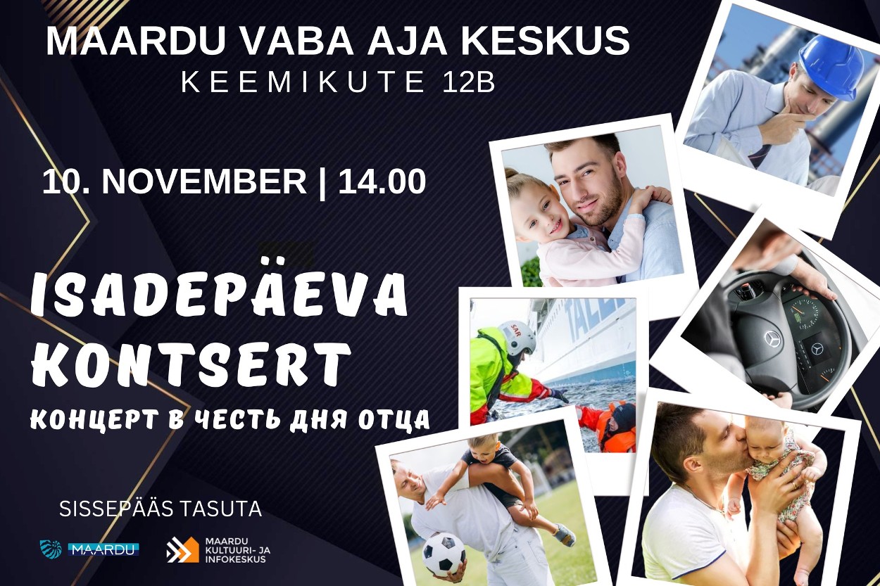 Ждём вас 10 ноября в 14:00 на замечательный семейный концерт в Маардуский центр досуга, где выступят талантливые молодые артисты.
