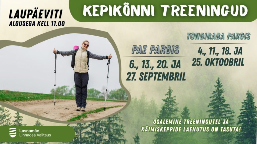 Osalemine treeningutel ja käimiskeppide laenutus on tasuta.